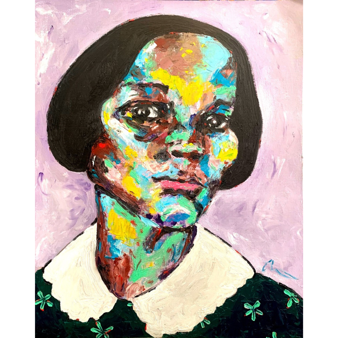 This is the 3rd in my series of unidentified Black Americans in history. The woman in this painting was a servant for the white family of Thomas Ustick Walter, and was used as a prop to show their status in their family photo. While information about the white folks in the photograph is available, she is still unidentified. When I saw this photo, like many, I thought she was completely striking. Honestly, she serves…Her energy radiates through the photo and instantly I knew she needed her portrait painted. I found this photo through the Instagram page @girl_gone_golden, and if you don’t already follow it, go do it now!